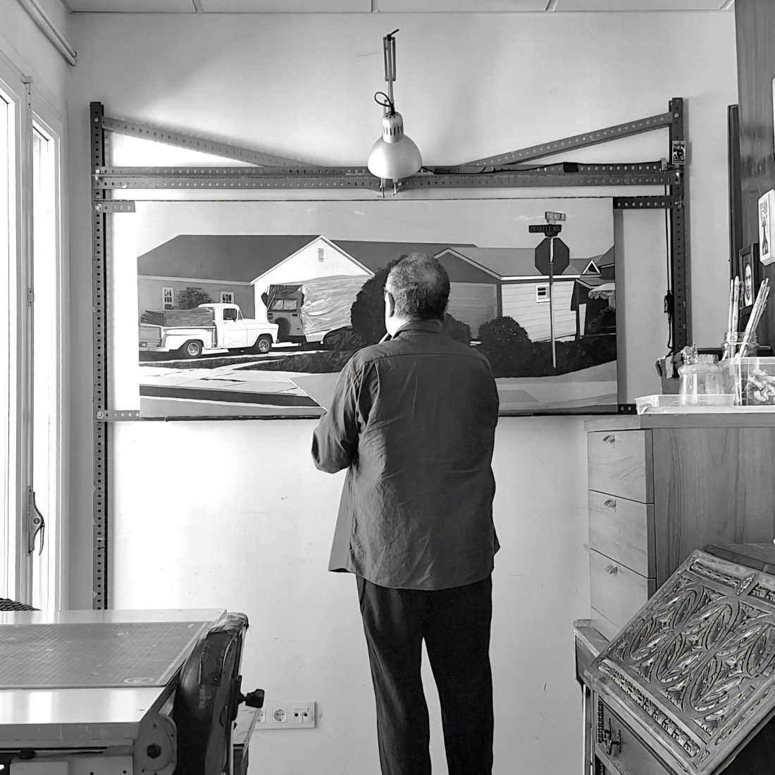 . ![]() 'Intersection' _ [Russell Ave._Moony Dr. Los Angeles] 162 x 72 cm. acrylic on canvas ![]() Texaco Gas Station Needles _ California Route 66 100 x 100 cm. acrylic on canvas ![]() Roy's Motel & Cafe Amboy _ California Route 66 50 x 100 cm. acrylic on canvas ![]() Mailboxes California 22 x 81 cm. acrylic on canvas |